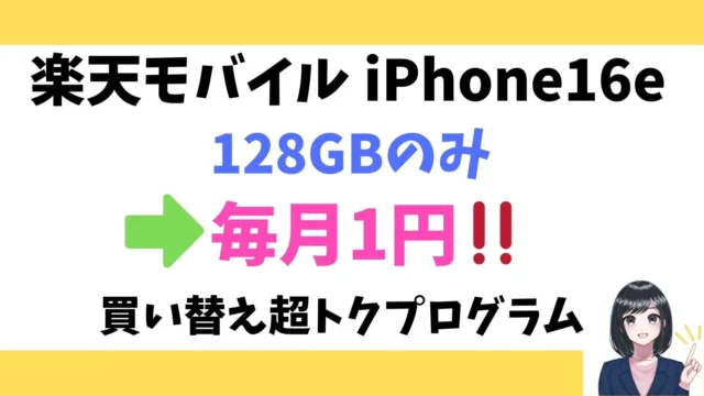iPhone 楽天モバイルのiPhone16eの128GBが月額1円!2年レンタル「買い替え超トクプログラム」のキャンペーン! 楽天モバイルのiPhone16eの128GBが、「買い替え超トクプログラム」利用で、1~24回目まで毎月1円の支払いで使えるキャンペーンが大人気です!2025年9月8日(月)9:00~終了日未定のキャンペーンです。※2025年9月9日14時... 2025.11.07 2025.11.08 iPhone