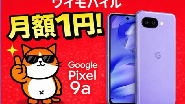 格安SIM ワイモバイルで「Google Pixel 9a」が月額1円!キャンペーンまとめ・一括1円も Google Pixel 9aは、Pixelシリーズの中でも「性能・価格・長期アップデート」のバランスが特に優れた最新モデルです。通常価格ではミドルレンジ帯のスマートフォンですが、ワイモバイルなどのキャンペーンを活用することで、条件次第では... 2026.02.25 格安SIM