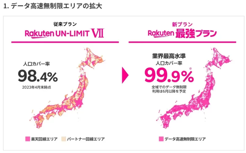 自社回線エリアが増えて、楽天回線 対応エリア追加されています。