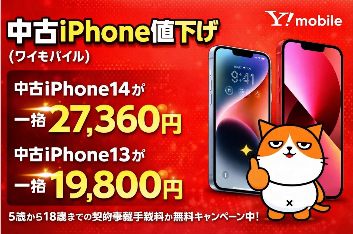 ▼5歳〜18歳のスマホデビューに最適!ワイモバイルで事務手数料無料&中古iPhoneが激安