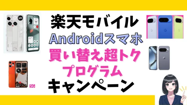 楽天モバイルのAndroidスマホの端末レンタル「買い替え超トクプログラム」のキャンペーンのまとめです。2025年8月28日スタートの終了日未定のキャンペーンです。SIMとセットで対象のAndroidスマホを「買い替え超トクプログラム」利用...
