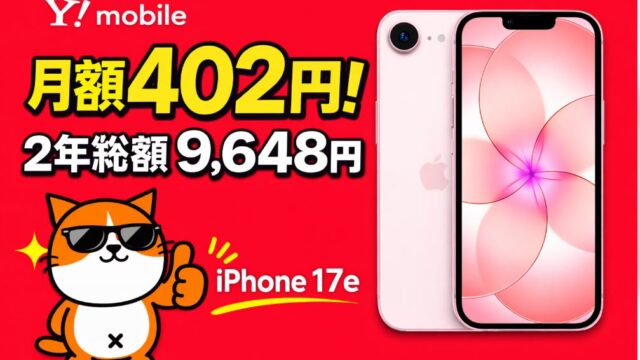 格安SIM 【衝撃】iPhone16e(128GB)が月1円!?ワイモバイルの新トクするサポート(A)とは ワイモバイルの「iPhone16e」128GBは月額1円でレンタルすることが出来ます。条件は以下他社からの乗り換え(MNP)料金プラン「シンプル3 S」「シンプル3 M」「シンプル3 L」のいずれかを選択48回払いの機種購入プログラム「新ト... 2026.02.14 2026.03.04 格安SIM