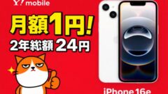 ▼ワイモバイルのiPhone16e 128GBが「月額1円」